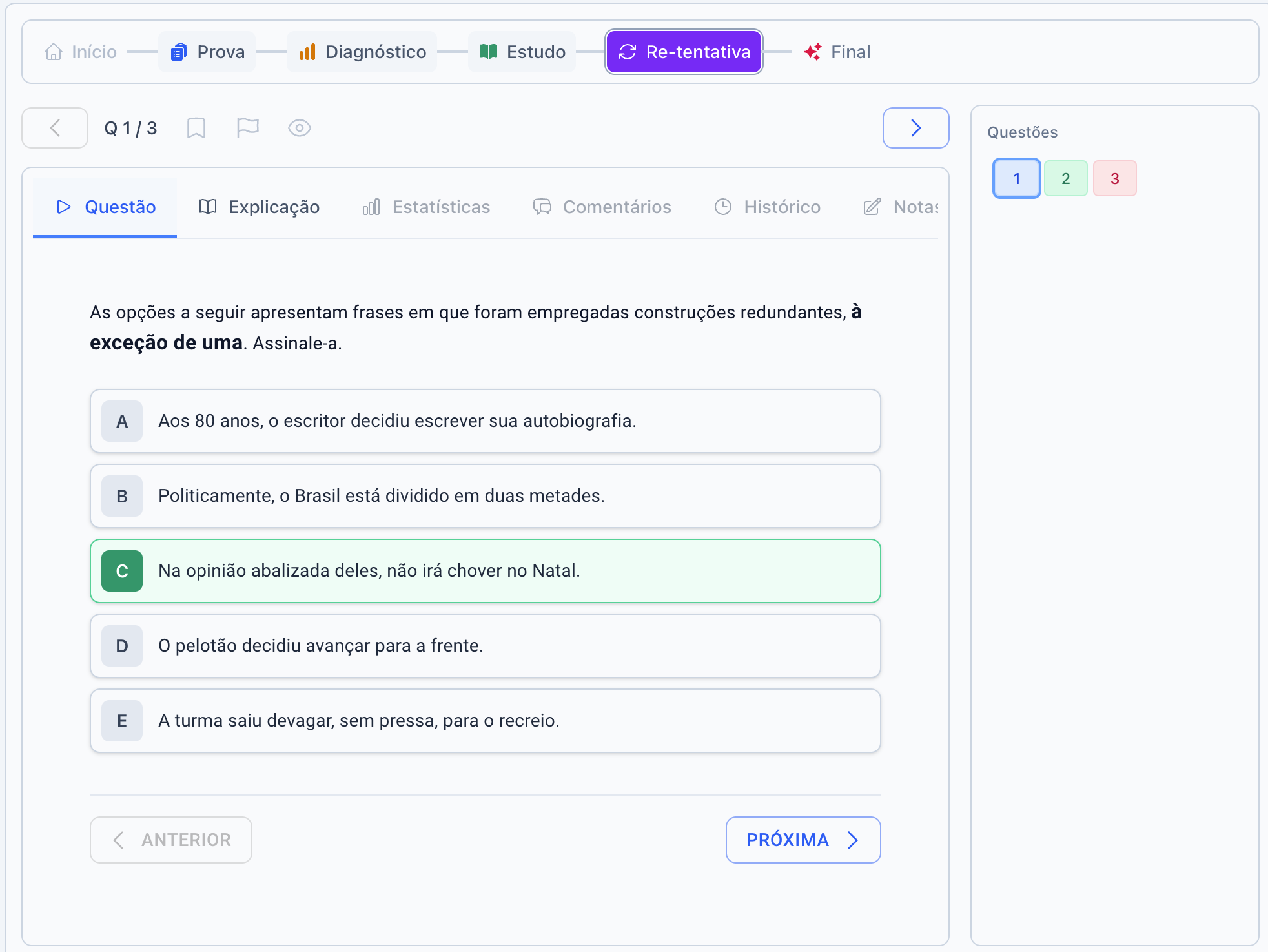 Agora que voce seguiu o plano de estudo, voce pode fazer uma nova tentativa com as questões que voce errou. Esta etapa é essencial para consolidar o aprendizado e aumentar suas chances de aprovação.